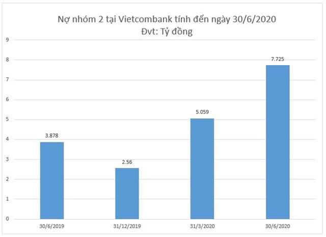 Nửa đầu năm 2020, nợ nhóm 2 tại Vietcombank tăng vọt 202%, lên mức gần 7.725 tỷ đồng.