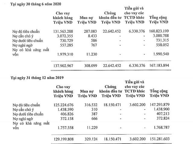 Nguồn: BCTC hợp nhất quý 2/2020 tại BIDV.