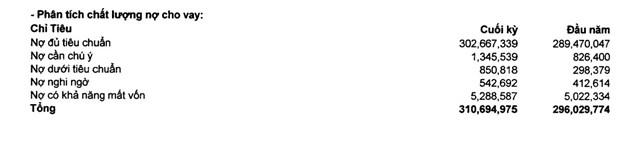 Trong đó, nợ có khả năng mất vốn (nợ nhóm 5 - Nhóm nợ nguy hiểm) tăng vọt 798% so với cuối năm trước, ghi nhận gần 2.146 tỷ đồng.