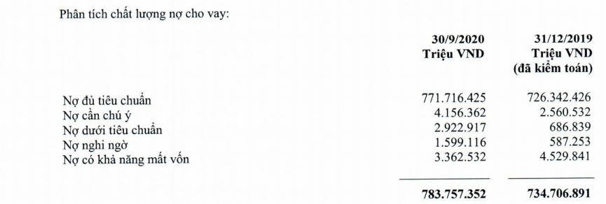 9 tháng đầu năm 2020, nhóm nợ dưới tiêu chuẩn (nhóm 3) giảm tại Eximbank, BIDV, MB,... nhưng sang nhóm nợ nghi ngờ (nhóm 4) và nợ có khả năng mất vốn (nhóm 5) lại tăng đột biến.