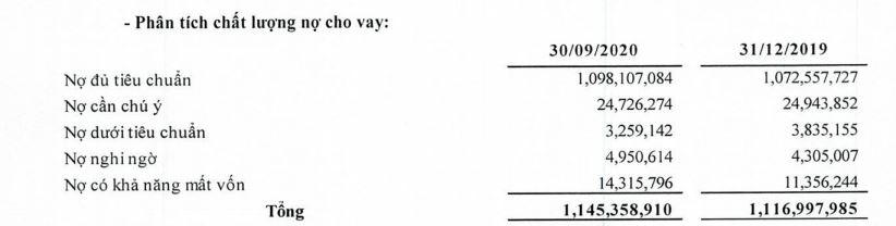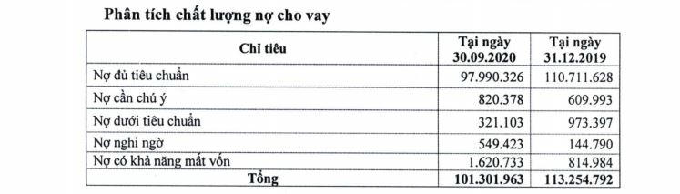 Tương tự, tính đến cuối tháng 9/2020 MSB tổng nợ xấu tăng 31% so với đầu năm, ghi nhận 1.702 tỷ đồng. Trong đó, nợ nhóm 3 và nhóm 4 tăng vọt 139% và 114% so với đầu năm, lần lượt đạt 362 tỷ đồng và 359 tỷ đồng. Tuy nhiên, nợ nhóm 5 lại xấp xỉ so với đầu năm.