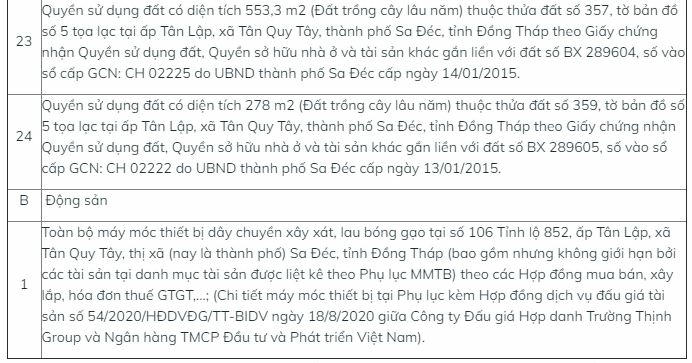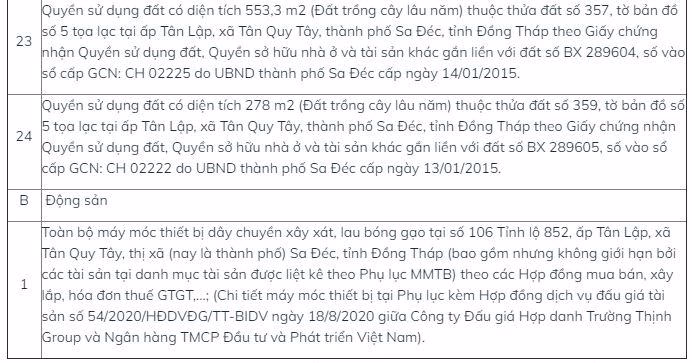 Đáng lưu ý, phía BIDV không công bố chủ sở hữu của toàn bộ các bất động sản và động sản trên.