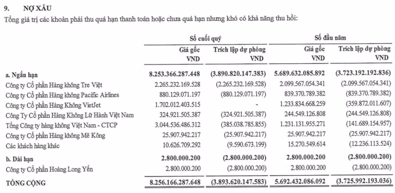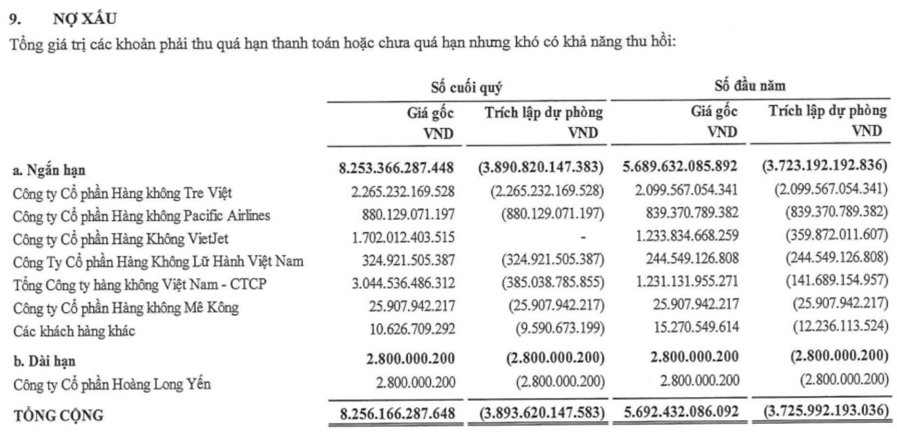 Bên cạnh việc kinh doanh ấn tượng, nợ xấu của ACV tăng mạnh 45% so với đầu năm, lên 8.256 tỷ đồng. ACV đã trích lập dự phòng 3.725 tỷ đồng.