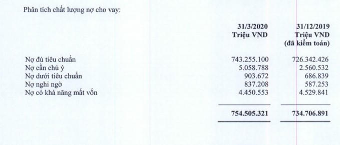 Nguồn: BCTC hợp nhất quý 1/2020 tại BacABank.