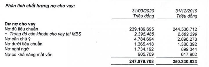 Nguồn: BCTC hợp nhất quý 1/2020 tại MBBank.