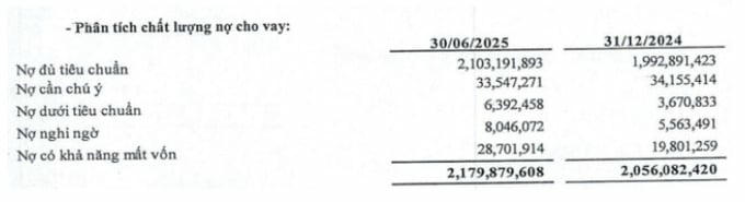 Cụ thể, nợ dưới tiêu chuẩn (nhóm 3) tăng lên 6.392 tỷ đồng so với 3.670 tỷ đồng cuối năm 2024; nợ nghi ngờ (nhóm 4) đạt 8.046 tỷ đồng, cao hơn mức 5.563 tỷ đồng trước đó. Đặc biệt, nợ có khả năng mất vốn (nhóm 5) tăng mạnh lên 28.702 tỷ đồng, so với mức 19.801 tỷ đồng cuối năm ngoái, tương đương mức tăng gần 45%.