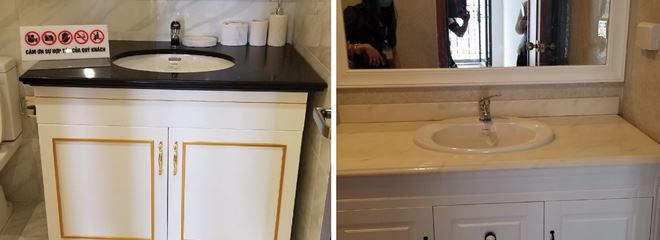 Ngoài ra, theo anh Thắng, với nhà mẫu thì cửa thông phòng có màu trắng, còn trên thực tế khi anh xem căn hộ trước bàn giao thì lại có màu đỏ. Ở phòng vệ sinh, tủ và gương cũng khác hẳn và xấu hơn nhiều.