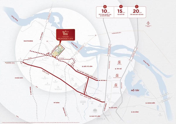 Ông Lê Thanh - nhà đầu tư và quan sát thị trường BĐS lâu năm cho biết, sức hút từ Vinhomes Wonder City một phần nhờ vào việc “hạ tầng đi trước”. Cụ thể, dự án sở hữu vị trí vàng khi nằm trên trục “đại lộ nghìn tỷ” Tây Thăng Long quy mô 10 làn xe. Đặc biệt, khoảng 2km cuối cùng kết nối trực tiếp đến dự án sẽ sớm hoàn thiện và thông xe trong 2025, giúp khai thông kết nối tới quận Tây Hồ và khu vực phát triển sôi động tại Võ Chí Công, Ngoại giao đoàn… chỉ trong 15 phút di chuyển.
