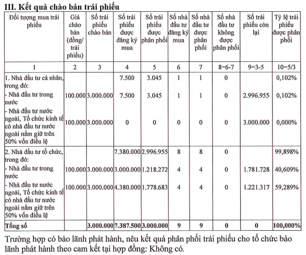 Tổng giá trị trái phiếu công ty phát hành trong đợt 1 là 300 tỷ đồng trong thời hạn 36 tháng với lãi suất 10,5%/năm. Bên cạnh đó, kỳ hạn trả lãi được công ty đưa ra là 6 tháng/lần.