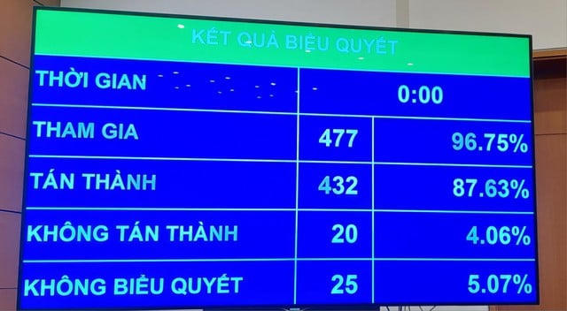 Với 432/477 đại biểu tham gia biểu quyết tán thành (chiếm 87,63%) Quốc hội chính thức thông qua Luật Đất đai (sửa đổi).