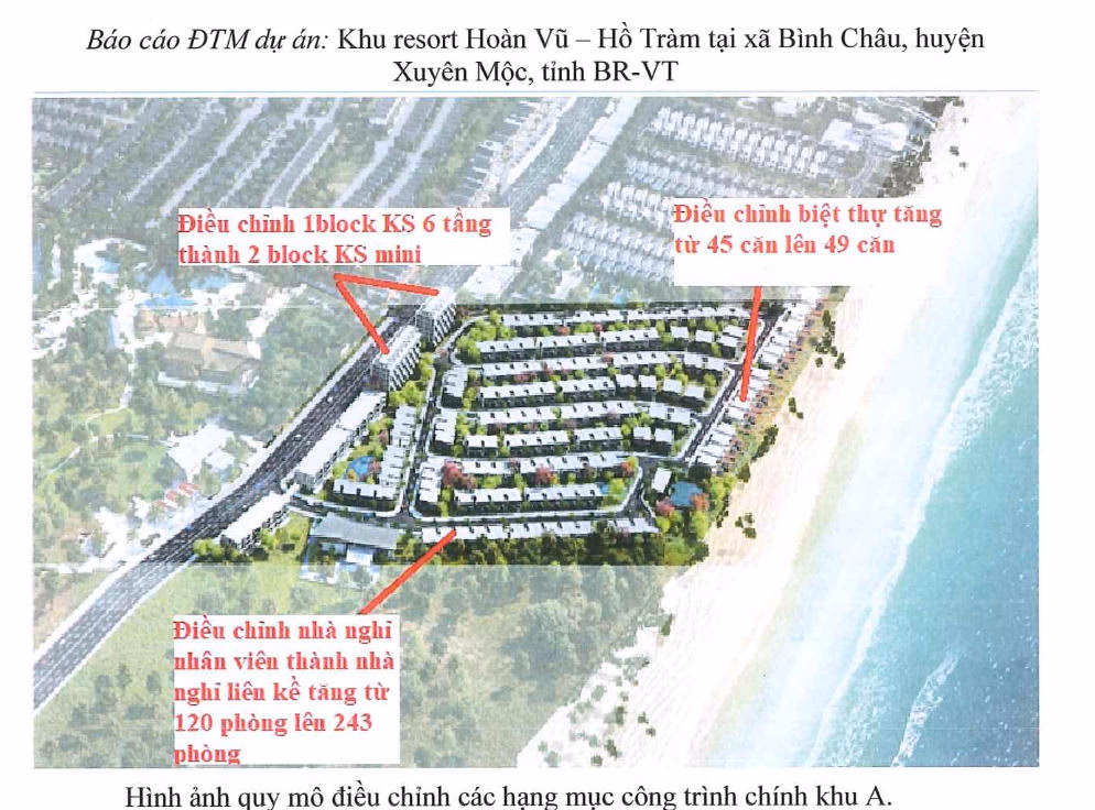 Sau khi điều chỉnh quy hoạch, khu A của dự án có 49 căn biệt thự nghỉ dưỡng, khách sạn mini 2 block, khu nhà nghỉ liền kề quy mô 243 căn phòng.