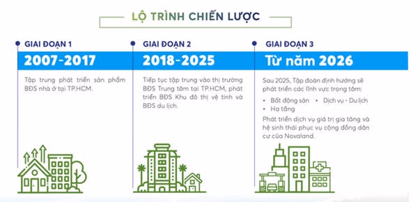 Nói về lộ trình chiến lược phát triển cho giai đoạn tiếp theo sau năm 2025, đại diện phía Novaland cho biết, dự kiến doanh nghiệp sẽ tham gia vào mảng BĐS công nghiệp tại các địa phương Bà Rịa – Vũng Tàu, Đồng Nai, Long An,… với thương hiệu Nova Industria Park. Ngoài ra, Novaland cũng muốn phát triển ngành xây dựng (quản lý dự án, thi công xây dựng) và nguyên vật liệu (vật liệu xây dựng, nhôm kính) và các dự án hạ tầng giao thông.