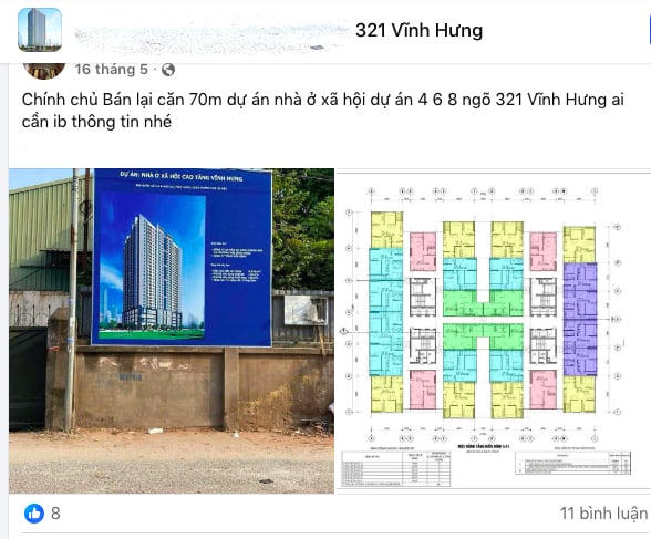 Trong vai người có nhu cầu mua nhà, liên hệ với tài khoản N.Đ.H.N. (tên đã được thay đổi), người này cho biết đang sở hữu 6 - 7 căn "suất ngoại giao" tại nhà ở xã hội cao tầng Vĩnh Hưng. Hiện chỉ còn một suất cuối cùng là căn hộ có diện tích 60m2, giá là 28 triệu đồng/m2.