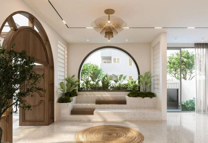 Căn biệt thự được thiết kế với gam màu nâu - trắng làm chủ đạo, ưu tiên nội thất cao cấp bằng gỗ với thiết kế tối giản và tinh tế.