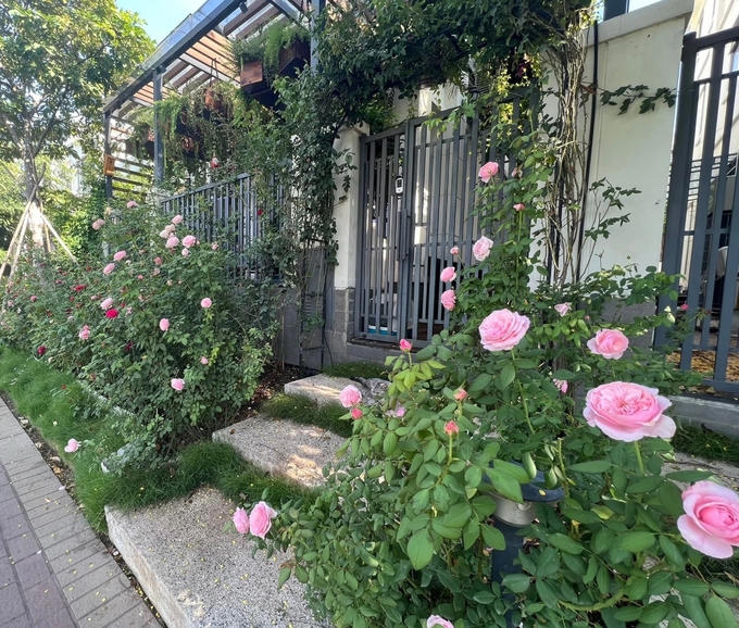 Bên cạnh đó, những khóm hồng ở vườn sau cũng được Vân Hugo chăm sóc tỉ mỉ.