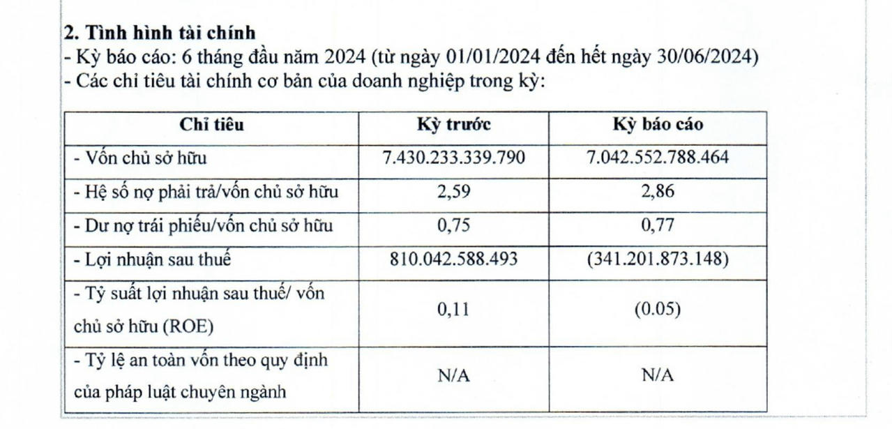 Đáng chú ý, dư nợ trái phiếu tại 30/6/2024 đạt hơn 5.400 tỷ đồng, tương đương 0,77 lần vốn chủ sở hữu.