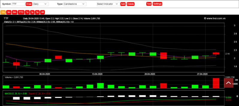 Tính đến kết phiên sáng ngày 28/04, mỗi cổ phiếu TTF có giá 2.150 đồng.