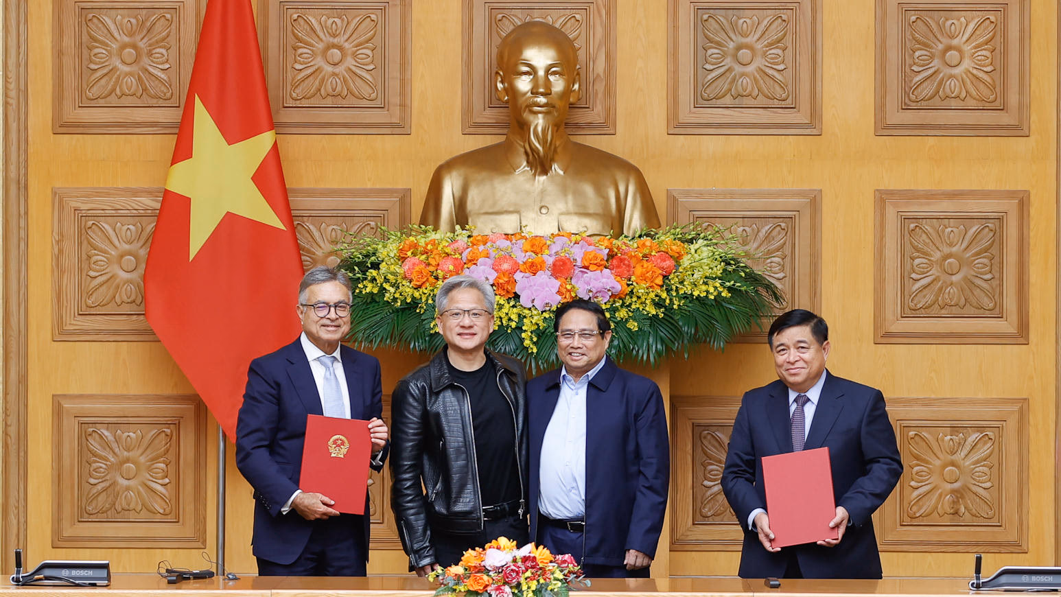 "Trí tuệ nhân tạo là cơ hội phi thường cho Việt Nam. Sự khuyến khích và ủng hộ mạnh mẽ của Việt Nam với lĩnh vực này sẽ là cú hích lớn để xây dựng hệ sinh thái trí tuệ nhân tạo cho Việt Nam và NVIDIA và tôi sẽ là đối tác, người bạn của các bạn trên mỗi bước đi, mỗi chặng đường trí tuệ nhân tạo. Tôi xin cảm ơn Thủ tướng về tầm nhìn và sự khuyến khích của ngài, chuyến thăm năm 2023 cùng các thông điệp của Thủ tướng đã thuyết phục được tôi về năng lực của Việt Nam, tương lai thịnh vượng mà trí tuệ nhân tạo có thể đưa ra cho Việt Nam", Chủ tịch NVIDIA nói.
