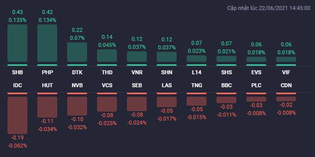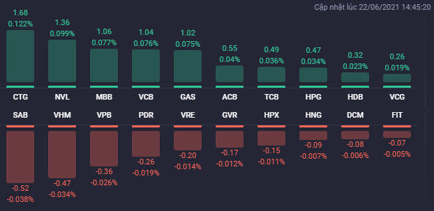 Thị trường chứng khoán Việt Nam biến động theo chiều hướng khá tích cực trong phiên 22/6. Các chỉ số gồm VN-Index, HNX-INdex và UPCoM-Index đều tăng điểm trong cả phiên giao dịch.