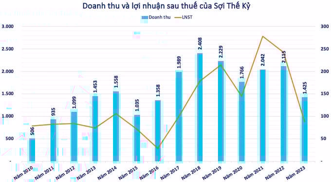 Sợi Thế Kỷ (STK) vừa trải qua năm 2023 kinh doanh khó khăn với doanh thu thuần đạt 1.425 tỷ , giảm 32% so với năm trước đó. Lợi nhuận sau thuế còn giảm sâu hơn, đến 63% xuống còn 88 tỷ đồng. Đây là năm thứ 2 liên tiếp Sợi Thế Kỷ báo lợi nhuận giảm sút.