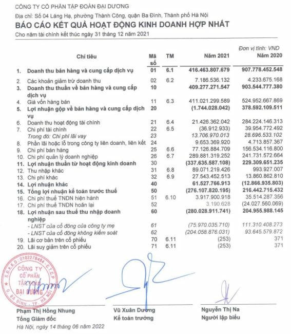 Xét về hoạt động kinh doanh, trong năm 2021, Ocean Group ghi nhận doanh thu giảm 54,7% so với kỳ về 409,28 tỷ đồng và lợi nhuận sau thuế ghi nhận lỗ 280 tỷ đồng so với cùng kỳ lãi 240,96 tỷ đồng. Trong đó, đáng chú ý, Công ty kinh doanh dưới giá vốn dẫn tới lợi nhuận gộp âm.