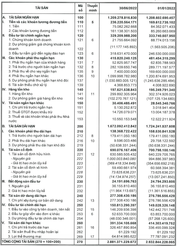 Tính tới cuối quý II/2022, Ocean Group ghi nhận tổng tài sản hơn 2.881 tỷ đồng, chủ yếu là tài sản dài hạn. Ngoài ra, trong tổng tài sản, hàng tồn kho ghi nhận ở mức 197 tỷ đồng, gần như đi ngang so với đầu năm.