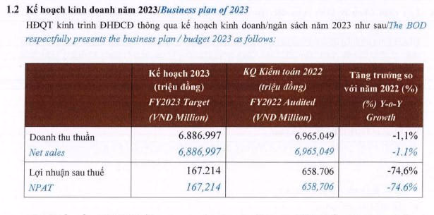 Bước sang năm 2023, Golden Gate đặt mục tiêu kế hoạch tăng trưởng âm so với năm 2023. Cụ thể, doanh thu thuần dư kiện đạt 6.887 tỷ đồng, giảm 1,1% so với năm 2022, lợi nhuận sau thuế đạt 167,2 tỷ đồng giảm 74,6%.