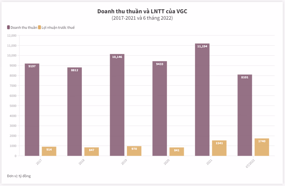 Trong 8 tháng đầu năm 2022, Viglacera đạt doanh thu 10.194 tỷ đồng, lợi nhuận trước thuế hợp nhất 1.992 tỷ đồng. Trong cuộc họp giao ban tháng 7, đơn vị này đã công bố kết quả kinh doanh 7 tháng với lãi trước thuế đạt 1.887 tỷ đồng. Như vậy, tính riêng trong tháng 8, lợi nhuận trước thuế của VGC đạt 105 tỷ đồng.