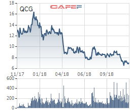 Giá cổ phiếu QCG giảm 60% trong 1 năm qua xuống 7.000 đồng/cp (nguồn: CafeF)