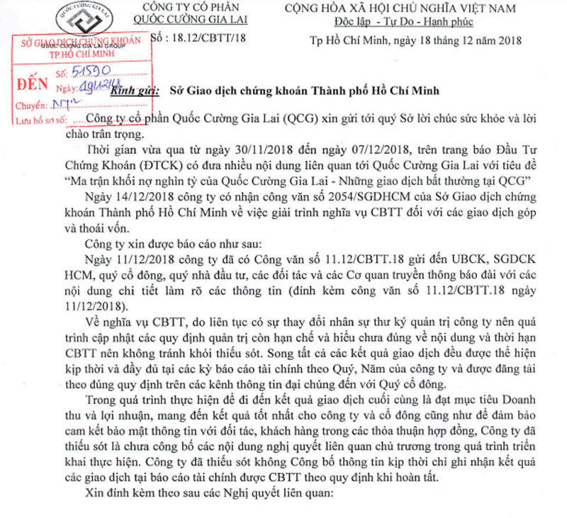 CTCP Quốc Cường Gia Lai (QCG) là doanh nghiệp bất động sản do nhà Nguyễn Thị Như Loan chi phối. Cùng với những biến động bất thường, khối nợ lớn, lãi thấp và giao dịch ngàn tỷ bí ẩn, cổ phiếu QCG chìm sâu giảm 70-80% trong năm 2018.