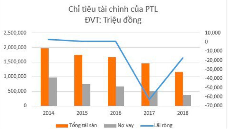 Năm 2018, PTL ghi nhận doanh thu gần 97 tỷ đồng, vượt 56% kế hoạch và báo lỗ gần 18 tỷ đồng. Liên quan đến thương vụ chuyển nhượng Dầu khí Thăng Long, theo tài liệu Đại hội cổ đông 2019, trong quá trình thực hiện hợp tác đầu tư dự án Chung cư Thăng Long, do gặp khó khăn về tài chính cũng như tình hình thị trường bất động sản đóng băng nên PTL đã không thể tiếp tục triển khai thực hiện dự án như tiến độ đề ra.
