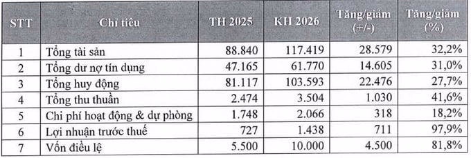 Năm 2026, PGBank đặt mục tiêu tổng tài sản tăng 32,2%, dư nợ tín dụng tăng 31%, tổng huy động tăng 26,5% và lợi nhuận trước thuế tăng 97,9%.