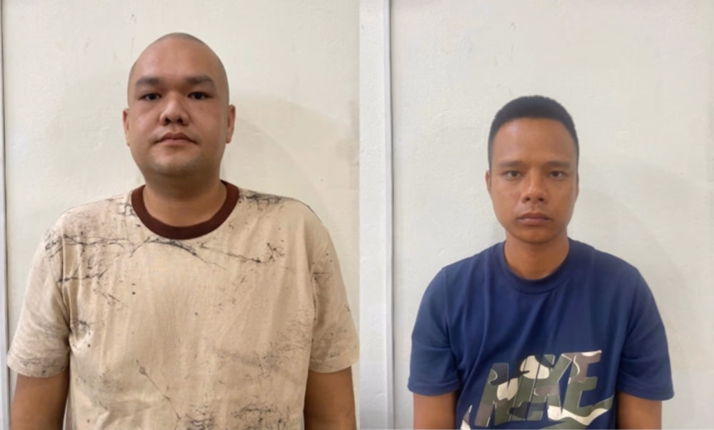 Đối tượng Vinh, Sơn tại cơ quan công an. Ảnh: CACC