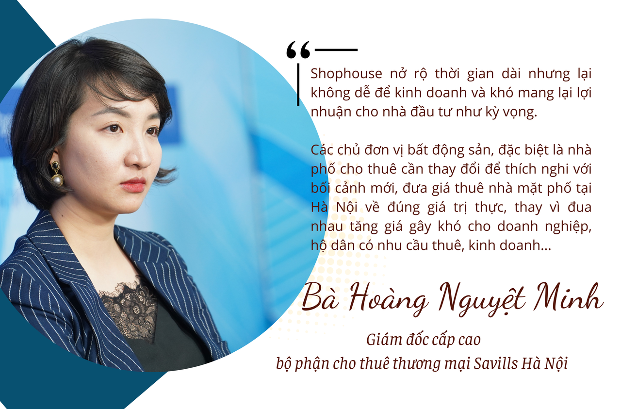 Theo bà Hoàng Nguyệt Minh Giám đốc cấp cao bộ phận cho thuê thương mại Savills Hà Nội nhận định, shophouse nở rộ thời gian dài nhưng lại không dễ để kinh doanh và khó mang lại lợi nhuận cho nhà đầu tư như kỳ vọng. Việc trả mặt bằng là tất nhiên.