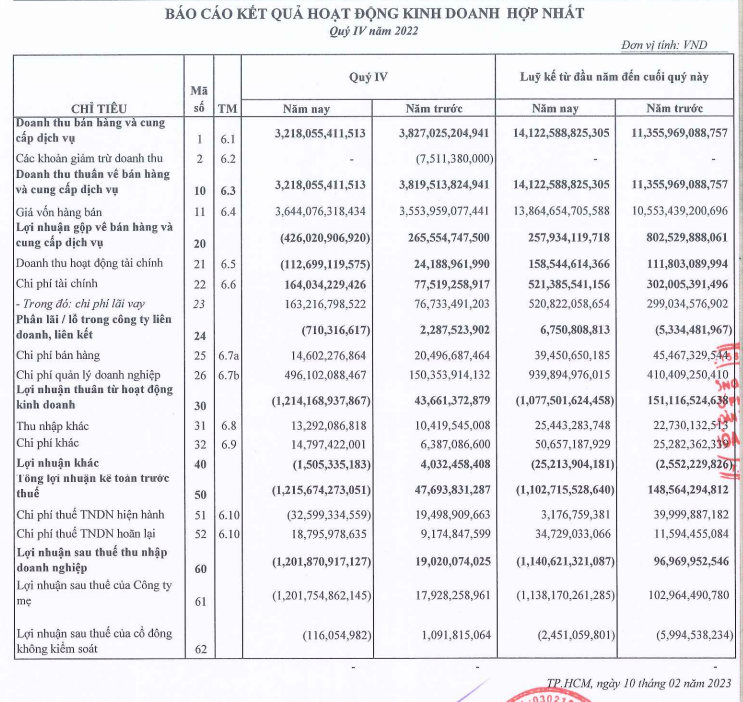 Con số này, cùng với doanh thu hoạt động tài chính, không đủ để bù đắp chi phí lãi vay và chi phí quản lý doanh nghiệp. Cả hai chỉ tiêu đều tăng tính bằng lần.