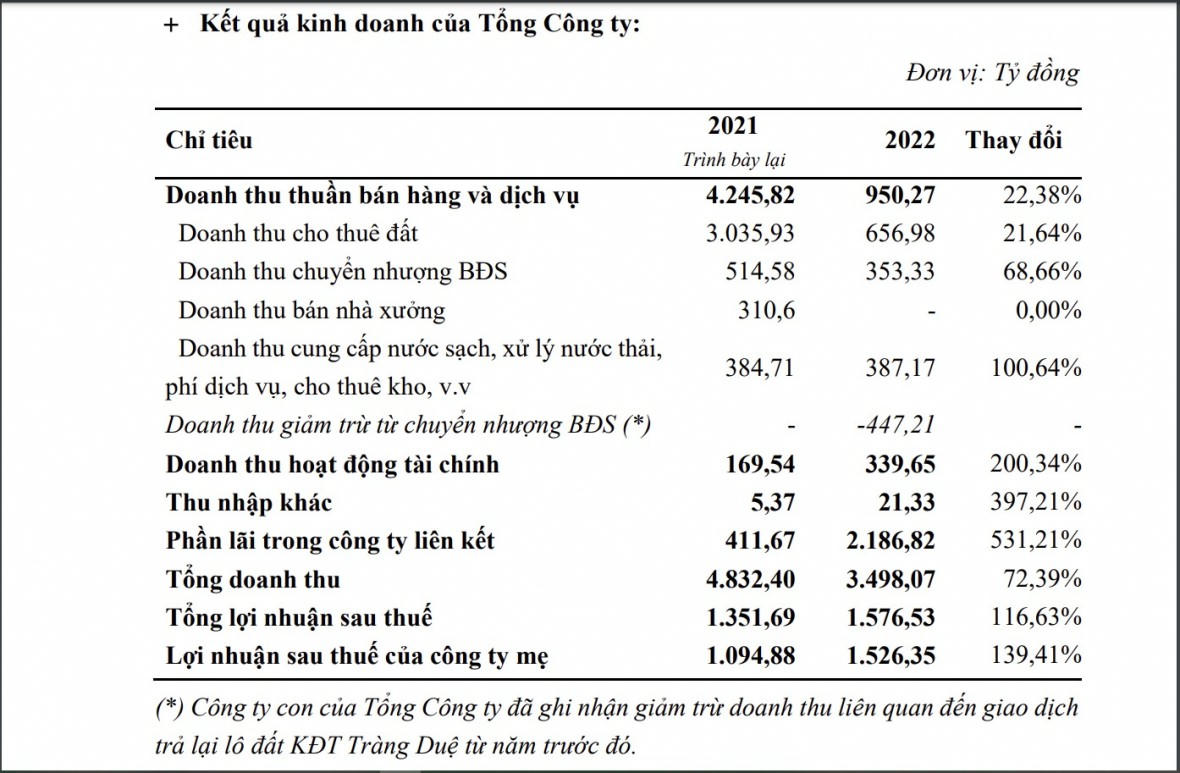 Kết quả, kết thúc năm 2022, Kinh Bắc ghi nhận khoản lợi nhuận hợp nhất sau thuế đạt 1.576,53 tỷ đồng (bằng 116,63% so với năm 2021, bằng 35,03% so với kế hoạch). Đồng thời, lợi nhận sau thuế của Công ty mẹ đạt 1.526,35 tỷ đồng (bằng 139,41% so với năm 2021).