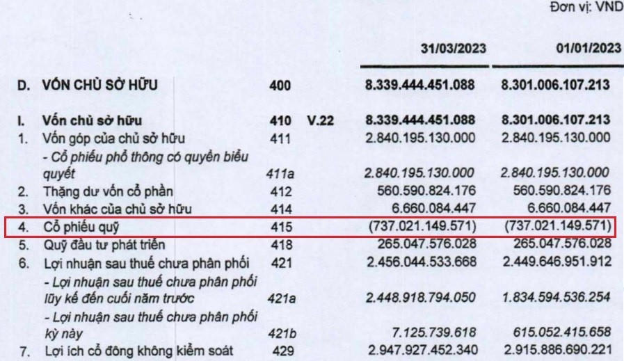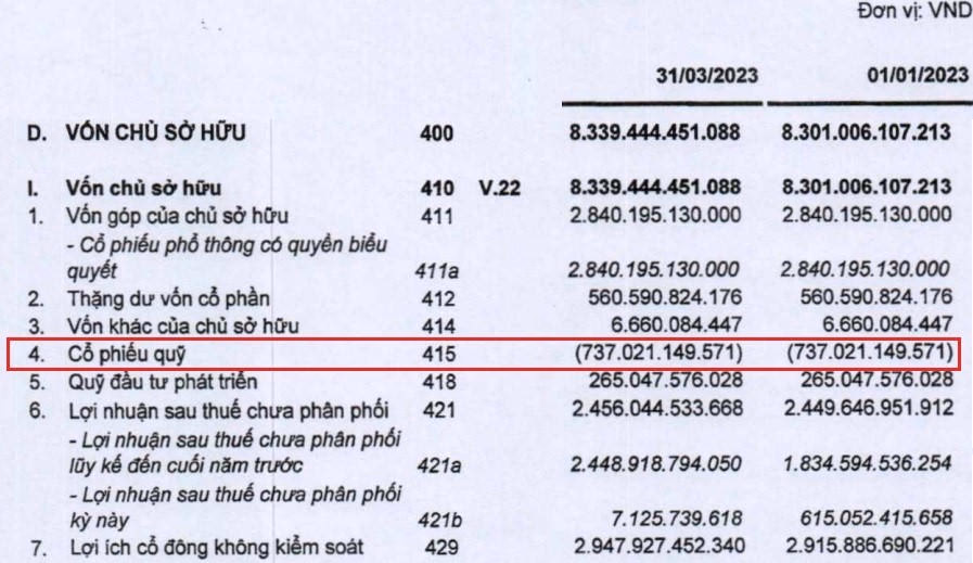 Ngoài ra, tính tới cuối quý I/2023, tổng nợ vay ngắn hạn và dài hạn tăng 4,5% so với đầu năm, tương ứng tăng thêm 650,2 tỷ đồng, lên 15.232,5 tỷ đồng và bằng 183% vốn chủ sở hữu.