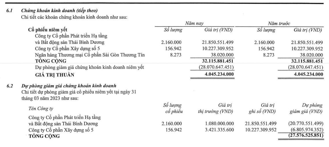 Về chứng khoán đầu tư, chủ yếu gồm 2 cổ phiếu PPI và SC5 trong khi số lượng cổ phiếu STB nắm giữ không đáng kể. Toàn bộ số cổ phiếu của PPI và SC5 được chuyển hết và danh mực dự phòng giảm giá chứng khoán kinh doanh.