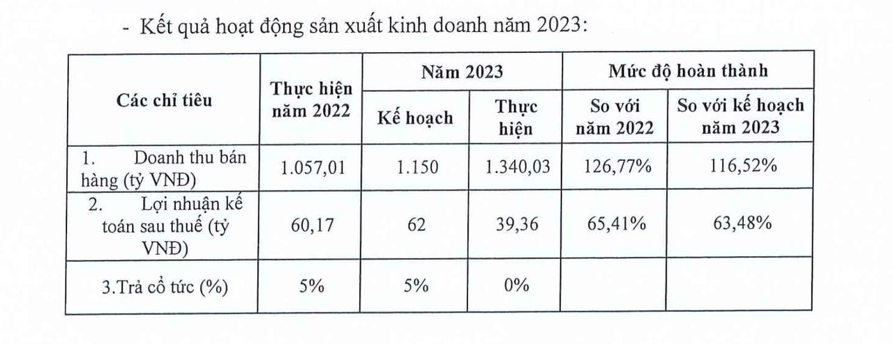 Theo Đại hội đồng cổ đông 2024, Dược phẩm Trung ương I – Pharbaco ghi nhận doanh thu năm 2023 là 1.340 tỷ đồng, đạt 126% kế hoạch năm 2023; Lợi nhuận sau thuế chỉ đạt 39,3 tỷ đồng, chỉ 63,48% so với kế hoạch năm 2023.