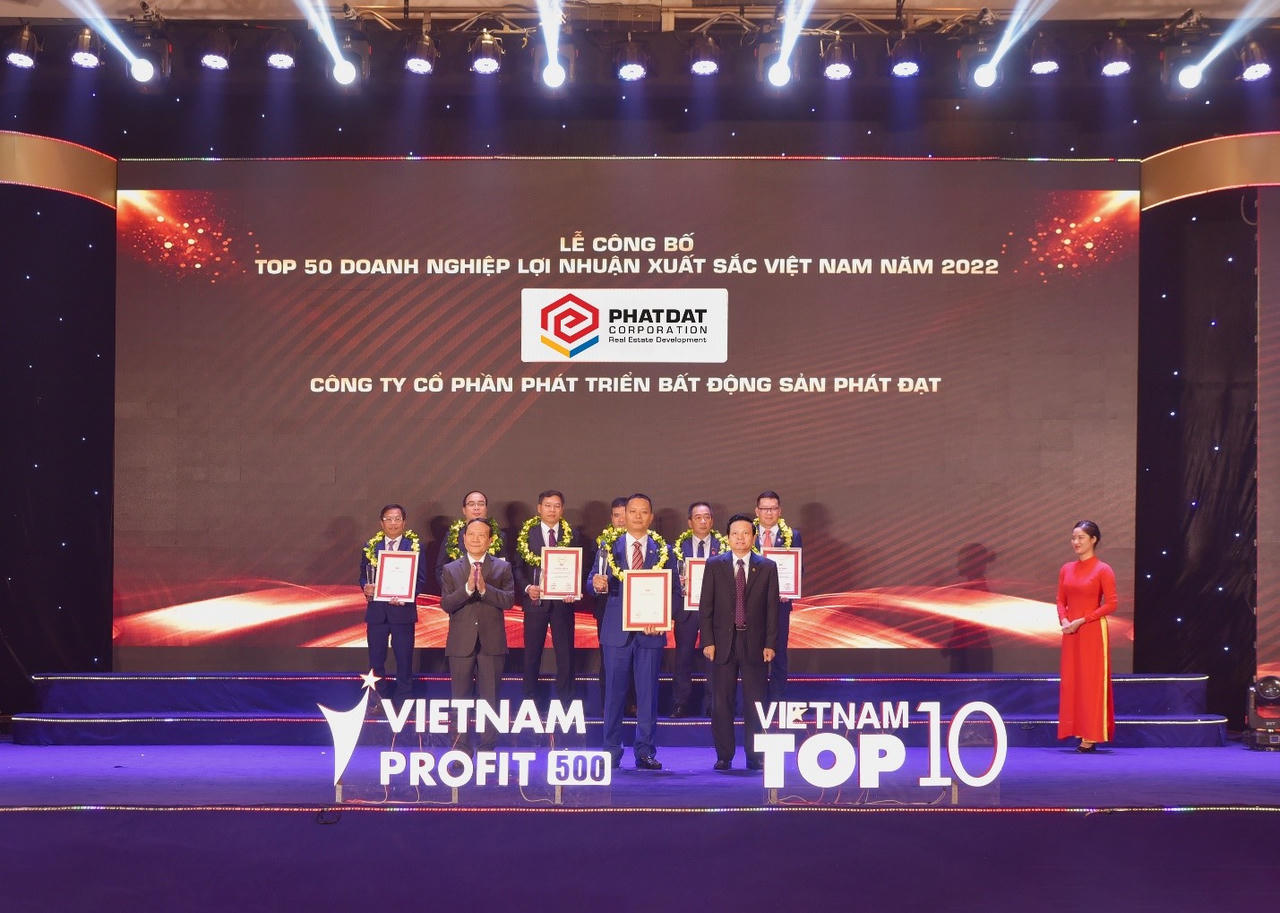 Ngày 25/10/2022 đã diễn ra Lễ công bố Top 500 Doanh nghiệp lợi nhuận tốt nhất Việt Nam năm 2022. Công ty Cổ phần Phát triển BĐS Phát Đạt (HoSE: PDR) được vinh danh Top 50 doanh nghiệp lợi nhuận xuất sắc.
