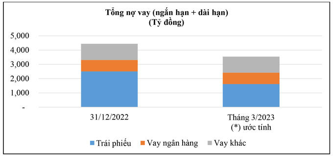 Sau khi tất toán gần 900 tỷ đồng trái phiếu trong tháng 1/2023, ước tính tổng nợ vay (ngắn hạn + dài hạn) của Phát Đạt ở mức 3.500 tỷ đồng, trong đó 46% là trái phiếu phát hành, phần lớn đáo hạn vào cuối năm 2023.