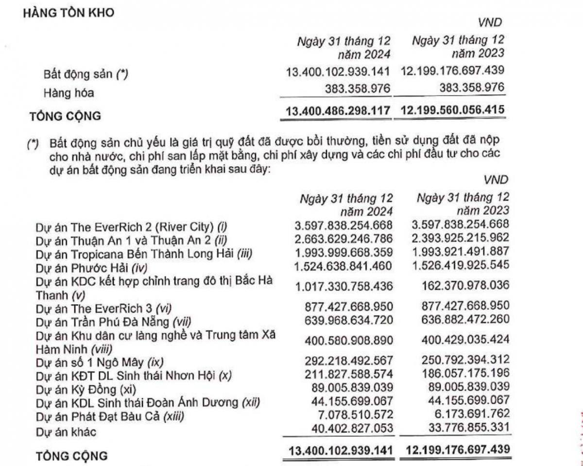 | Hàng tồn kho của Phát Đạt (Nguồn: BCTC hợp nhất quý IV/2024). |
