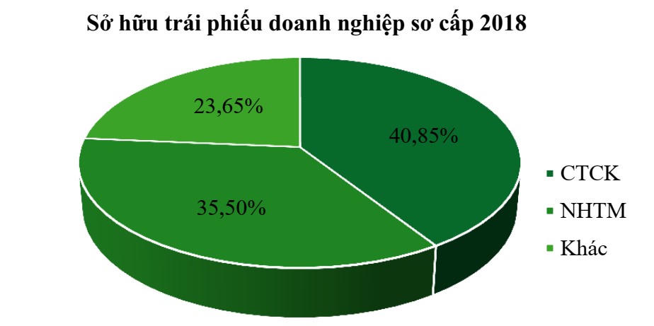 Ngân hàng thương mại đang sở hữu khoảng 35,5% lượng trái phiếu doanh nghiệp. Bên cạnh đó, có khoảng 40,85% do công ty chứng khoán sở hữu, chắc chắn trong đó có một tỷ lệ không nhỏ vốn này có nguồn gốc từ ngân hàng. Điều này cho thấy một tỷ lệ rất cao trái phiếu đang do ngân hàng trực tiếp hoặc gián tiếp sử hữu. Nguồn: VCBS