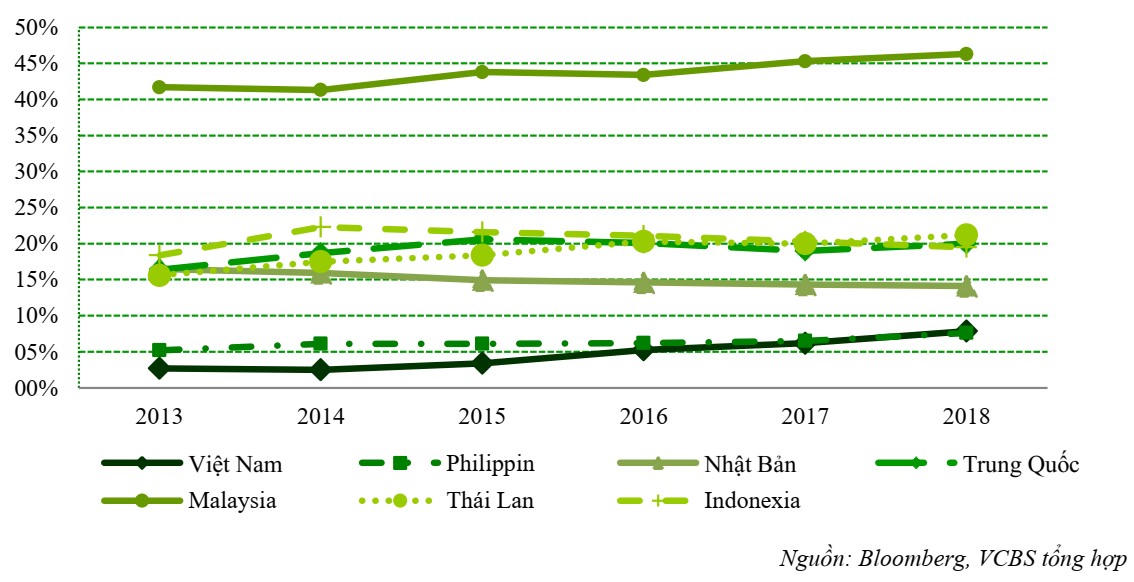 Quy mô trái phiếu so với GDP ở một số quốc gia