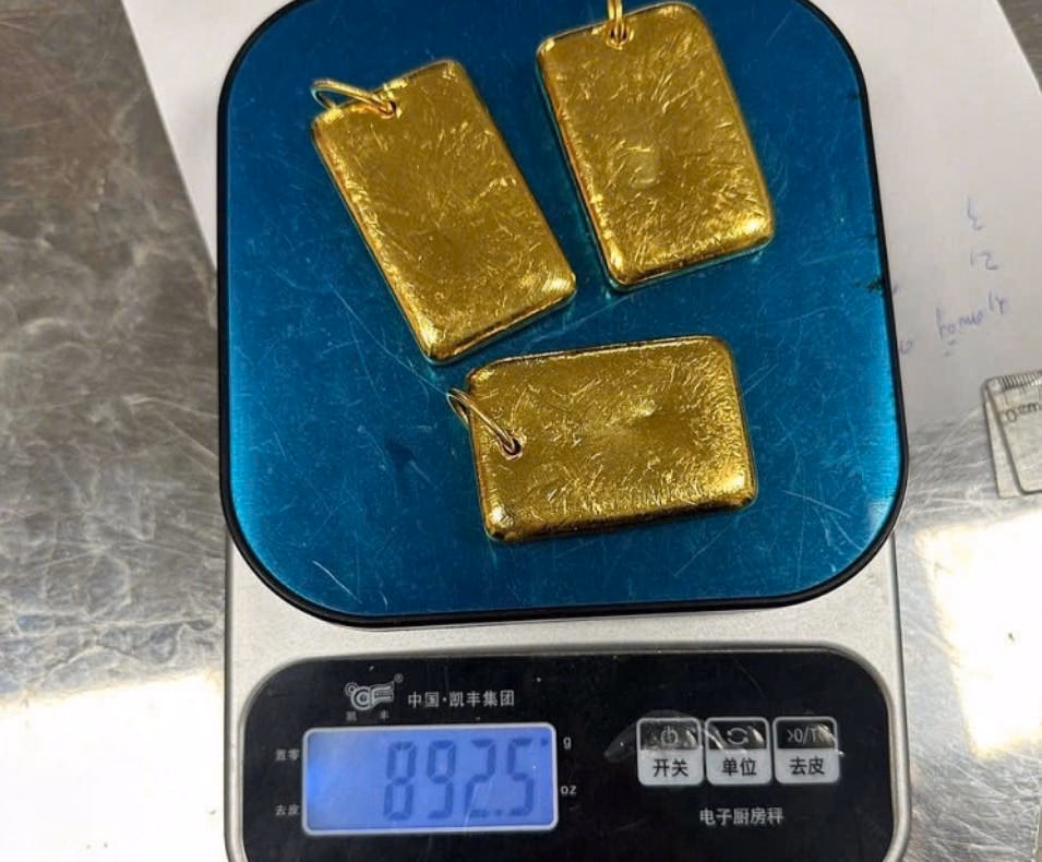 Qua kiểm tra thực tế, hành khách này mang theo 3 miếng kim loại nghi là vàng miếng, tổng trọng lượng 892,5 gram, giấu trong balo xách tay, nhưng không thực hiện khai báo hải quan theo quy định.