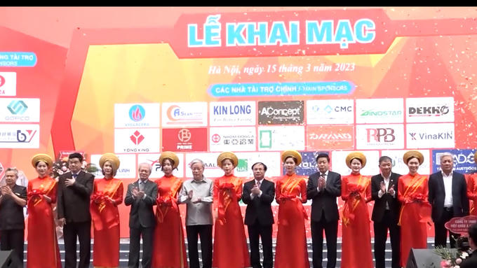 Các đại biểu cắt băng khai mạc triển lãm Vietbuild Hà Nội 2023.