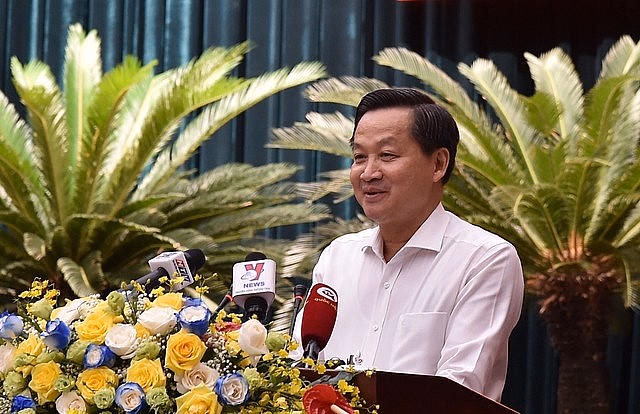 | Phó Thủ tướng Lê Minh Khái nhấn mạnh, Nghị quyết 31-NQ/TW của Bộ Chính trị sẽ tạo động lực mới đưa TPHCM trở lại quỹ đạo phát triển. Ảnh VGP/Trần Mạnh |