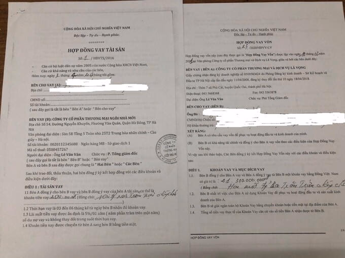 Với các thông tin ông Vân đưa ra, ông Trần Anh Tuấn cùng nhiều người đã tin tưởng “rót tiền” cho ông Vân thông qua các hình thức như hợp đồng vay vốn, hợp đồng vay tài sản, cam kết,… Với những hồ sơ ông Tuấn cung cấp là những hợp đồng giữa những cá nhân với đại diện Công ty CP Thương mại Ngôi Nhà Mới Công ty CP Thương mại và Dịch vụ Lã Vọng là ông Lê Văn Vân, Phó Tổng Giám đốc.
