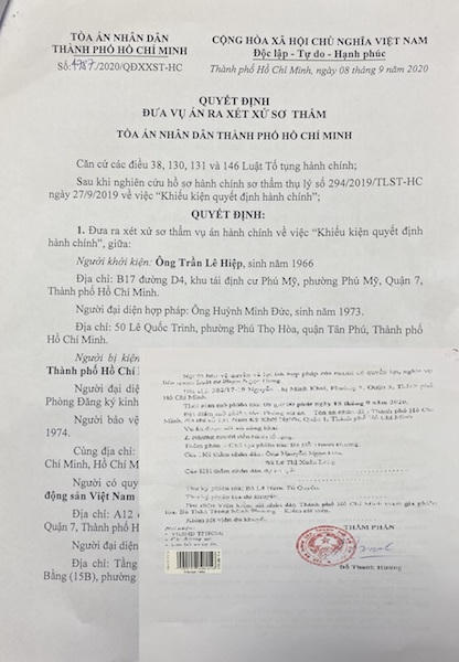 TAND TP.HCM đưa vụ án “Khiếu kiện quyết định hành chính” ra xét xử.