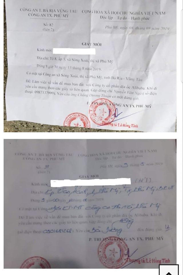 Công an nhiều địa phương đã gửi giấy mời làm việc với từng khách hàng mua đất của địa ốc Alibaba để làm việc